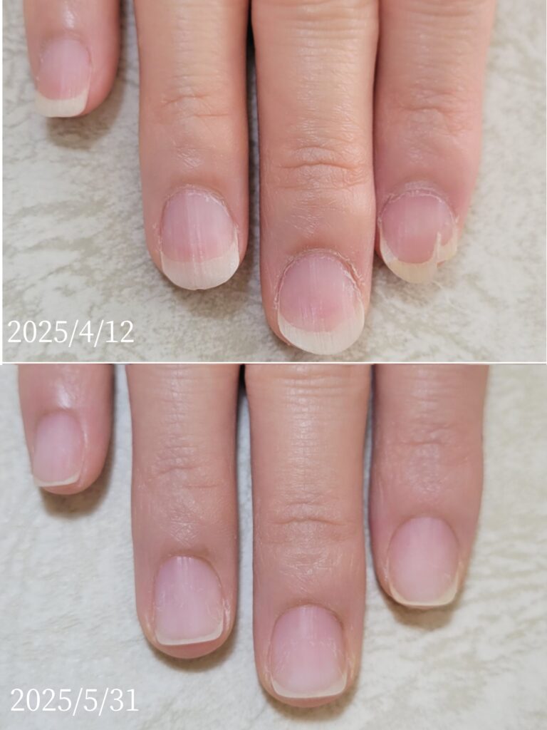 『初回の写真と見比べると、すごく爪のピンクの部分が成長していてびっくりです😲!!』と嬉しいご感想を頂きました🎵