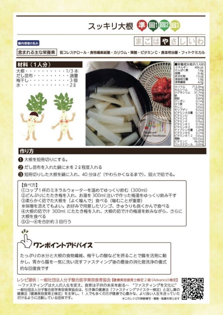 昆布出汁で煮た大根と梅干しで最後の仕上げに胃腸のお掃除をしていきます✨