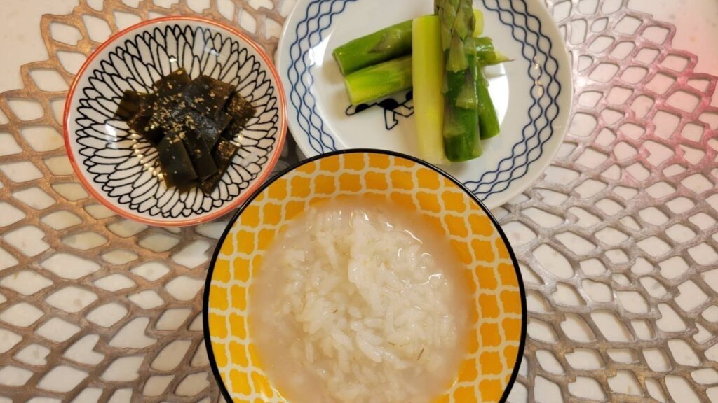 なのでまずは回復食1日目は消化に優しいお粥やスムージーなどの柔らかい物を頂きます。また、断食明けは味覚が敏感になっているので、超薄味の物を頂きます。味の濃い物は食欲を増進させるのでできるだけ薄味を意識します。