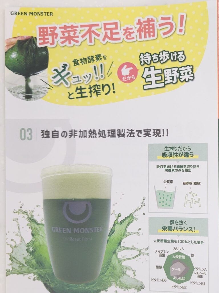 一見青汁に見えるグリーンモンスターですが、実は乳酸菌飲料なんです!