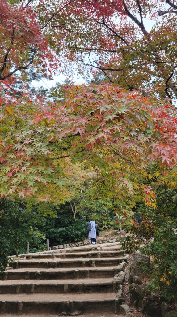 この先のロープウェイに乗ってパワースポットの弥山に行きたかったのですが、ロープウェイに乗るまでに恐ろしい列があり、帰りのロープウェイも恐ろしく混むという看板を見て今回は泣く泣く断念しました・・・どこもオーバーツーリズムの波が…🥲
