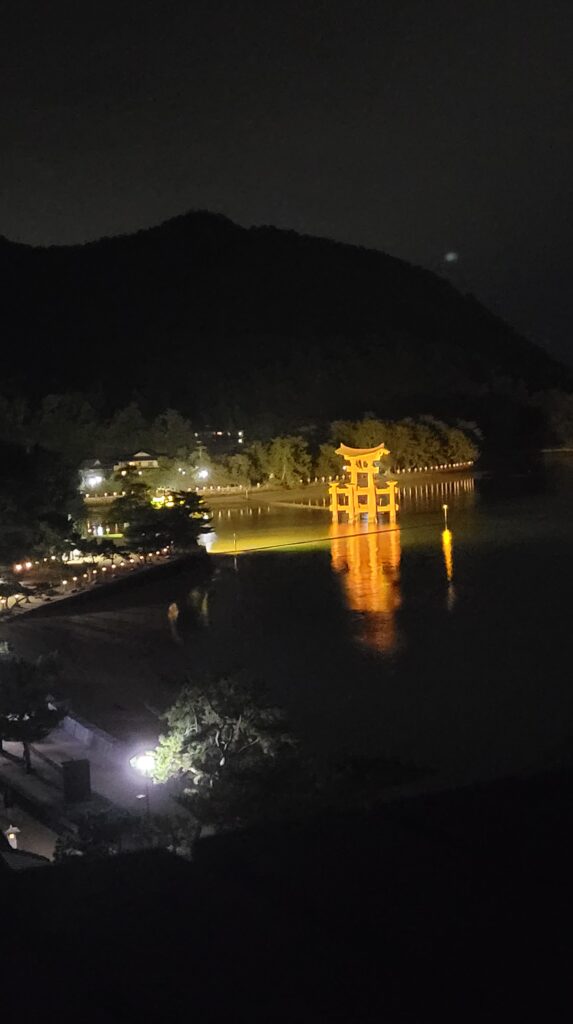 ホテルのルーフトップから見るライトアップされた厳島神社がとっても美しかった✨✨